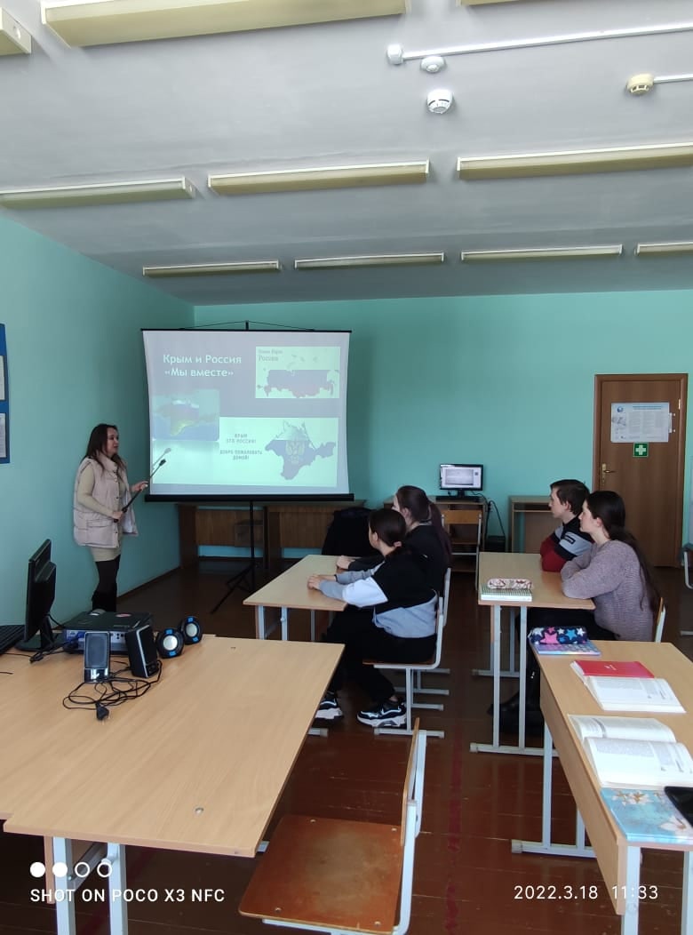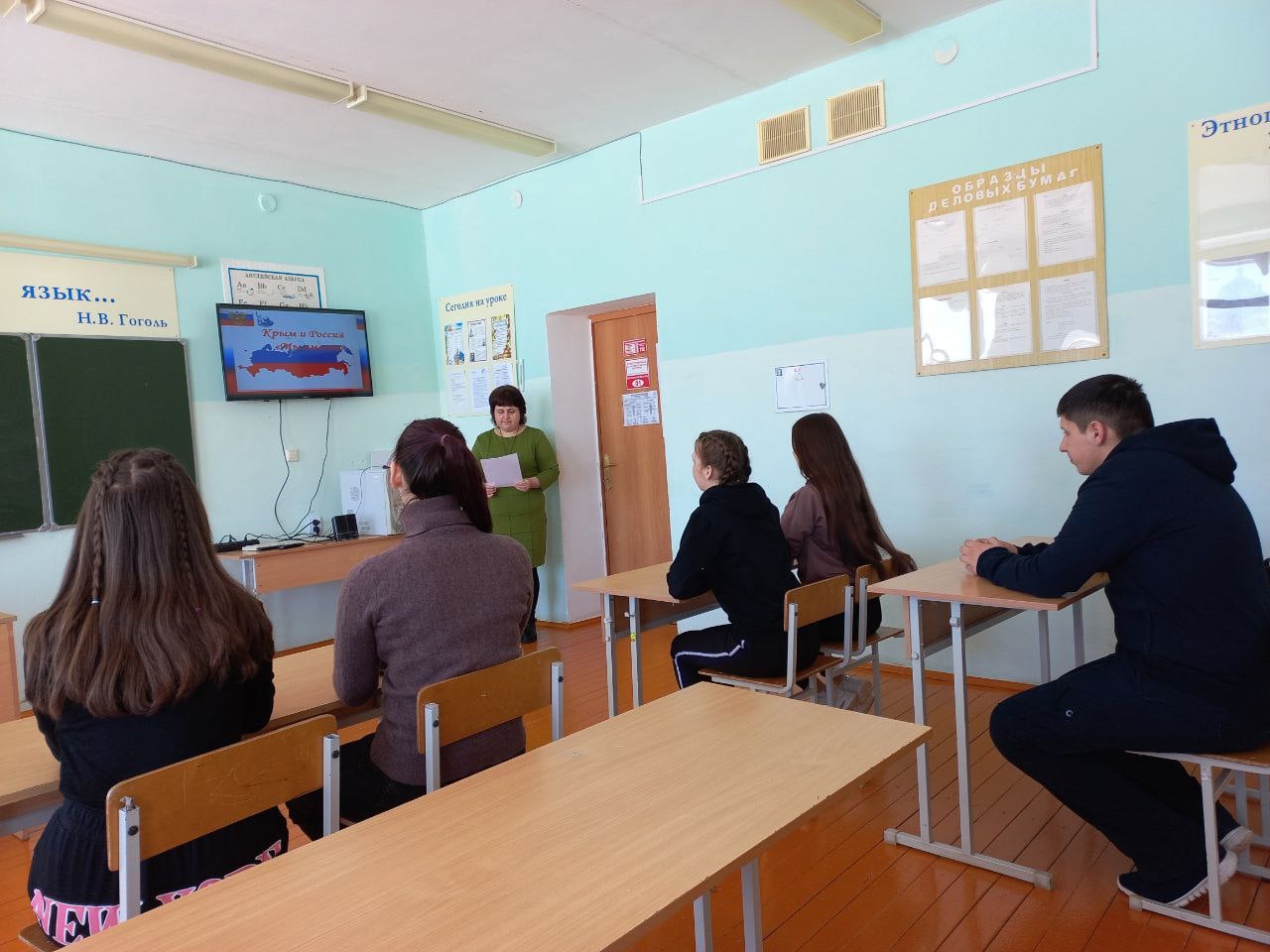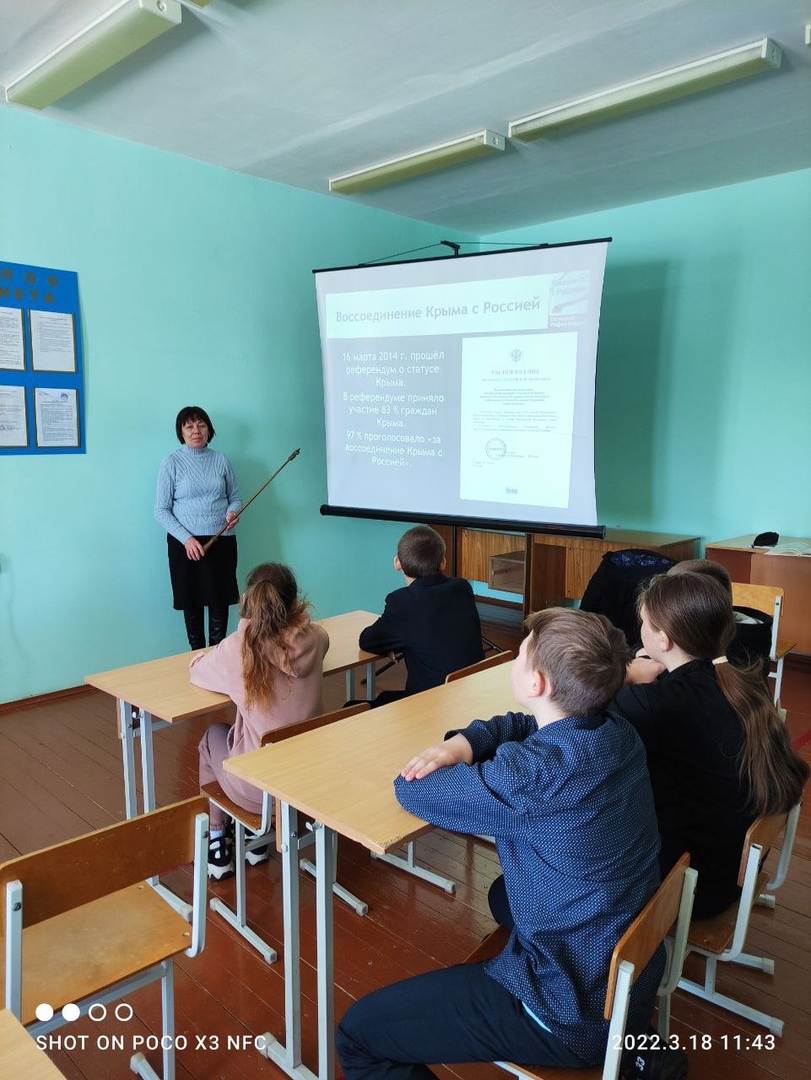 18 марта в школе прошли Единые классные часы, посвященные 8-й годовщине Общекрымского референдума 2014 года и воссоединения Крыма с Россией. Классные часы прошли под девизом «Россия и Крым едины!».