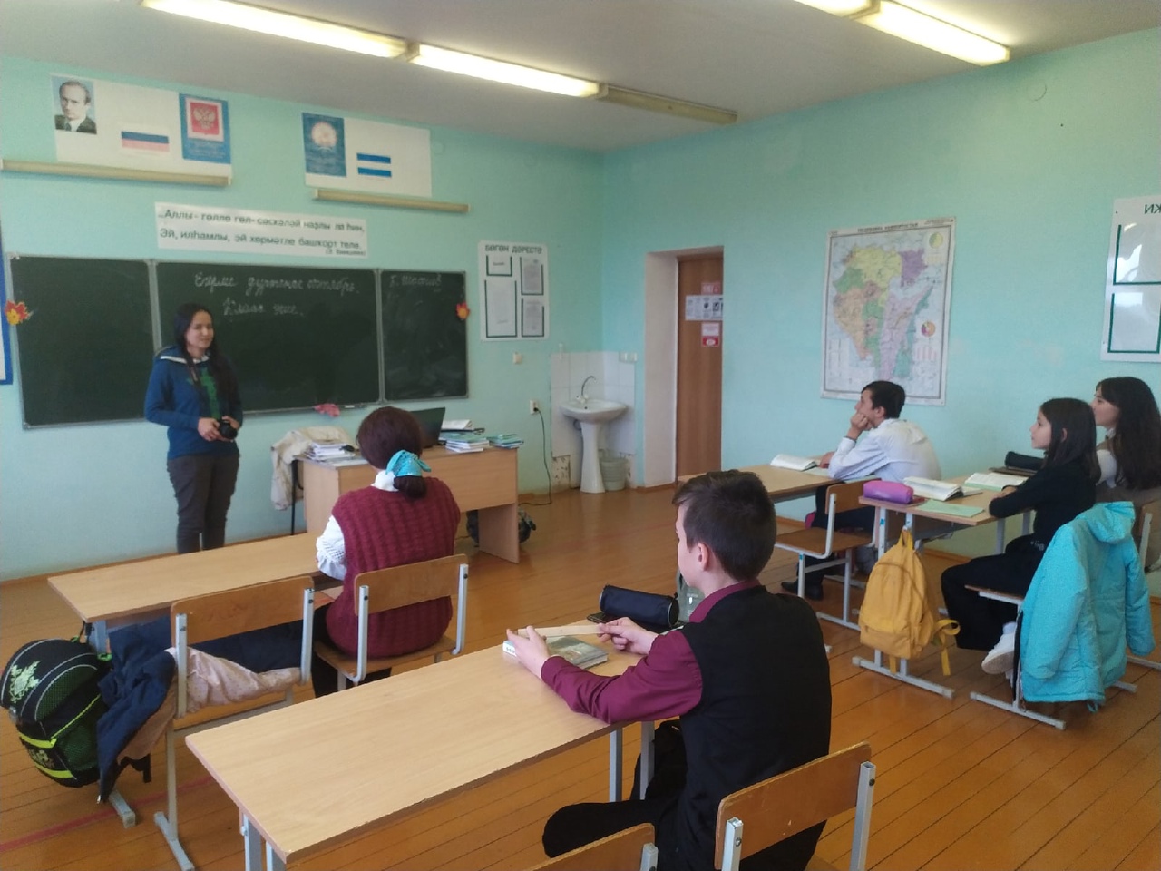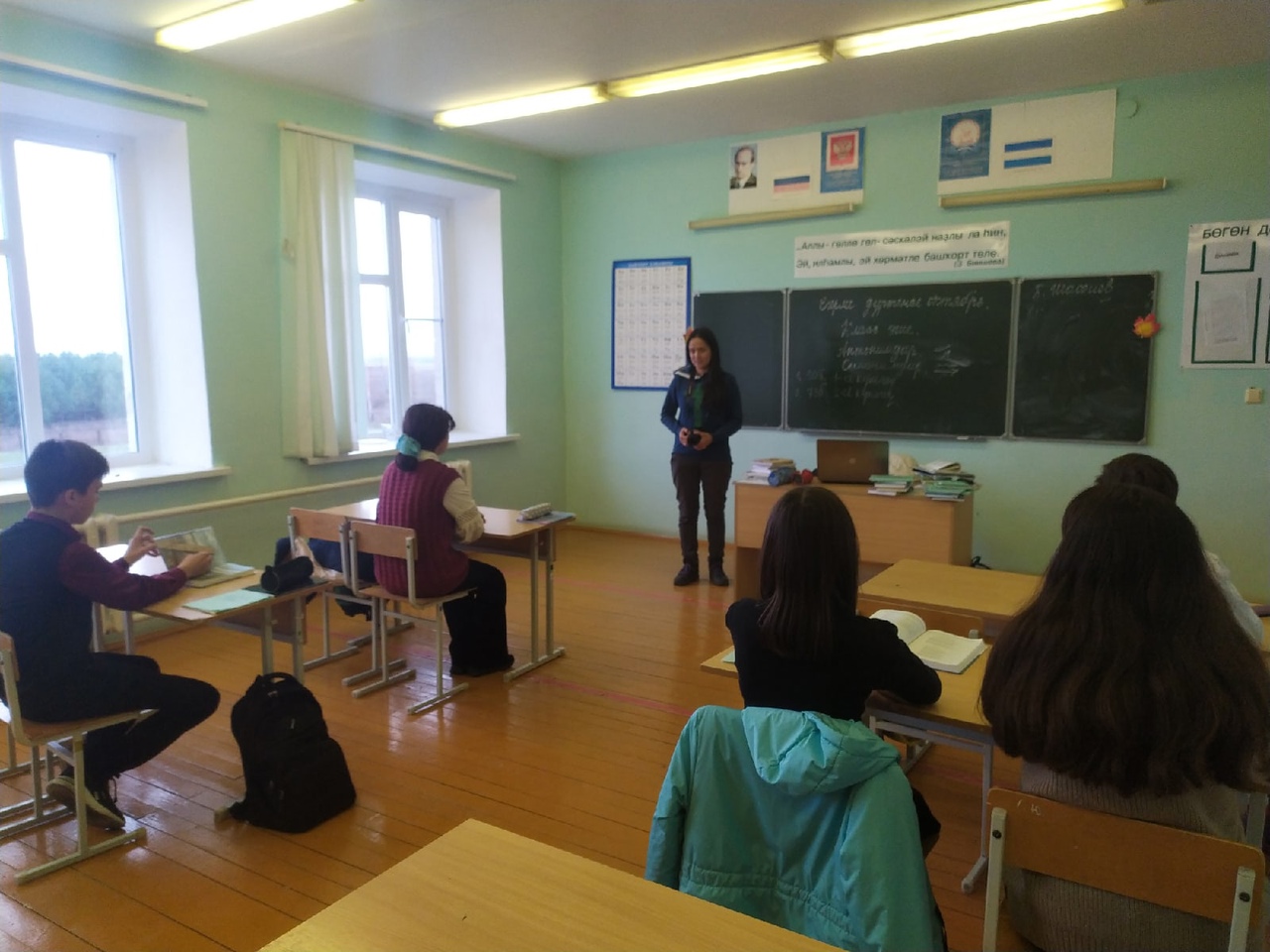 24 октября в школе состоялась интересная встреча с научным сотрудником отдела этнологии с лабораторией антропологической реконструкции ИИЯЛ УФИЦ РАН кандидатом исторических наук Абсалямовой Юлией Аликовной. Юлия Аликовна рассказала о сфере научных интересов: традиционное мировоззрение башкир, сакральный ландшафт, культ святых и о научной работе над которой она сейчас работает.