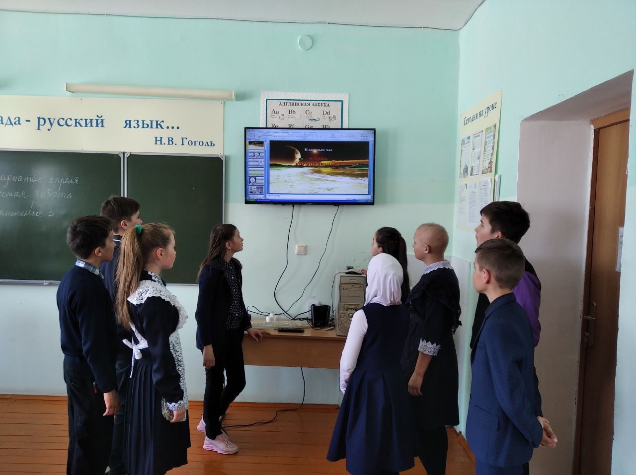 В беседах с педагогами дети узнали об истории возникновения этого праздника, о человеке, покорившем космическое пространство - Юрии Гагарине, первой женщине-космонавте Валентине Терешковой, о том как четвероногие друзья человека проложили путь к звездам, о планетах больших и малых. Учащиеся просматривали видеоролики, документальные фильмы «Он был первым!», «Это Гагарин», «Неизведанная вселенная» и др.