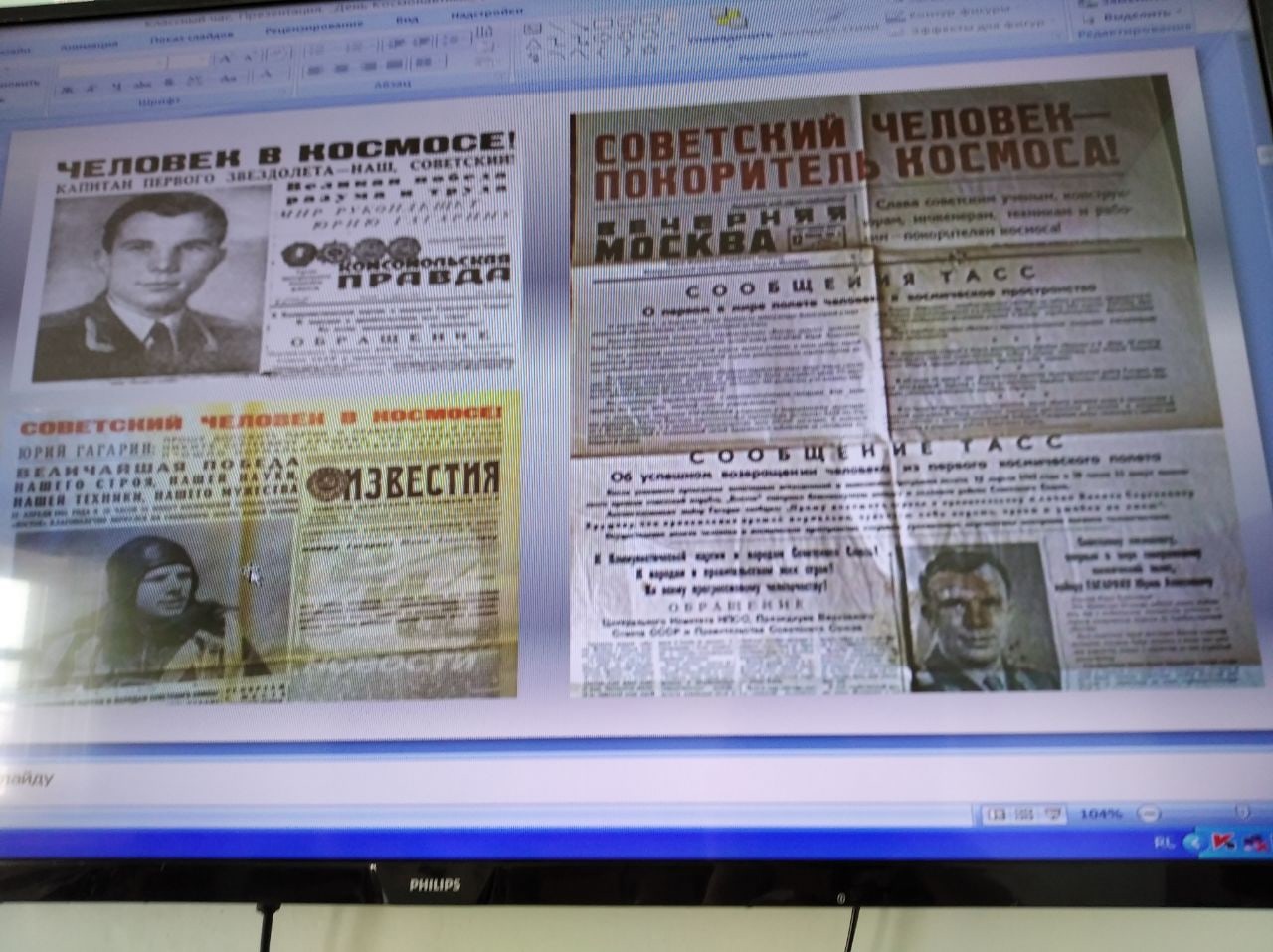 История развития отечественной космонавтики вызывает чувство гордости за нашу страну. В благодарной памяти потомков навсегда останется немеркнущий подвиг ученых, инженеров, конструкторов, рабочих, проложивших дорогу в космос. Космонавтика стала делом жизни нескольких поколений наших соотечественников. Каждый год мы с благодарностью вспоминаем о великом человеке, открывшем эру пилотируемых полётов в космос.