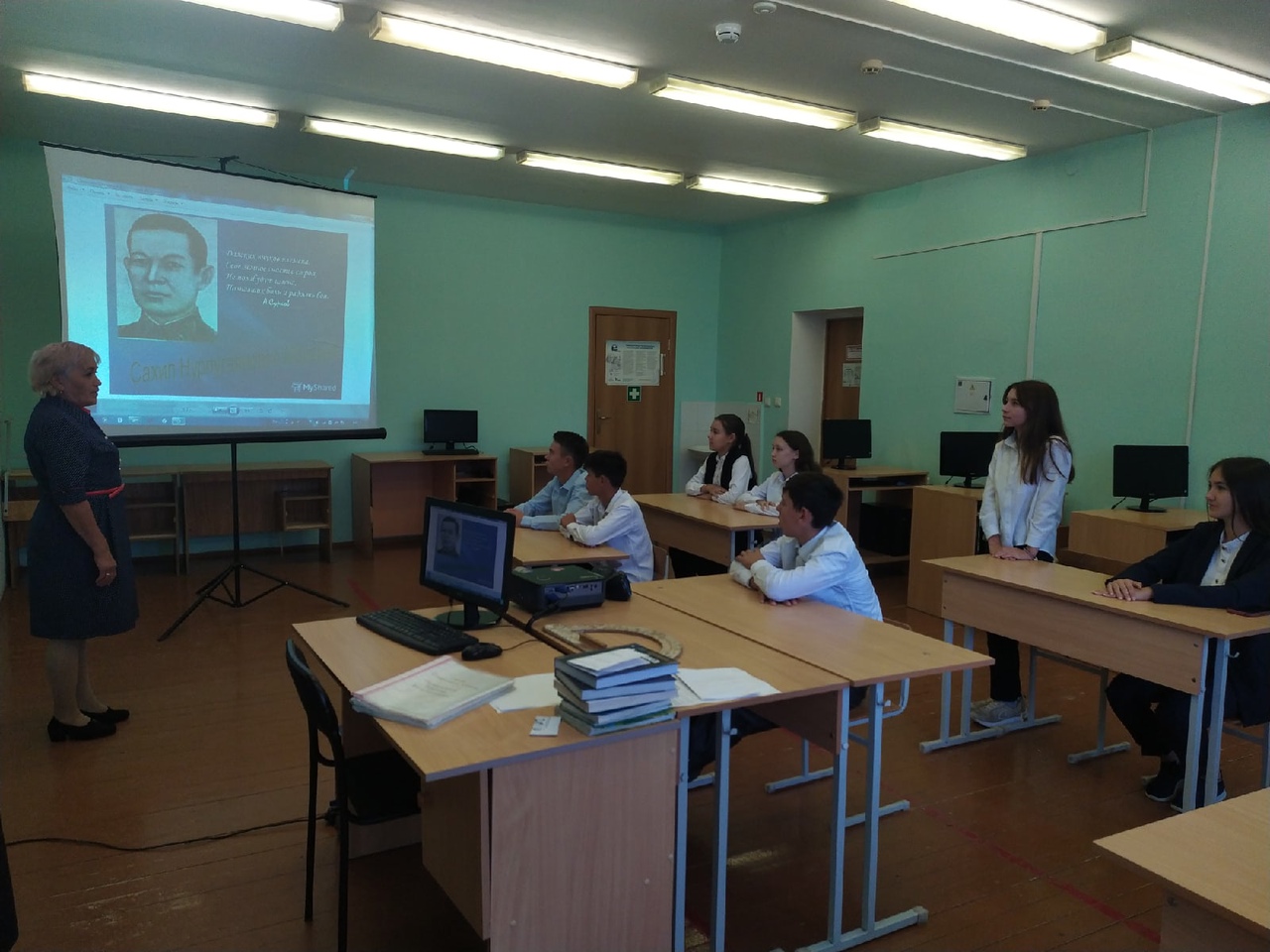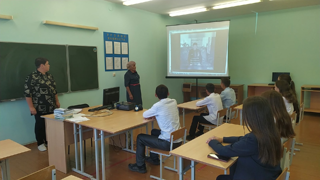 Спикер начала свою встречу со слов о малой родине, что значит она для каждого подростка, знают ли они историю своей деревни. Гульмира Зуфаровна рассказала детям о подвигах воинов-земляков.
