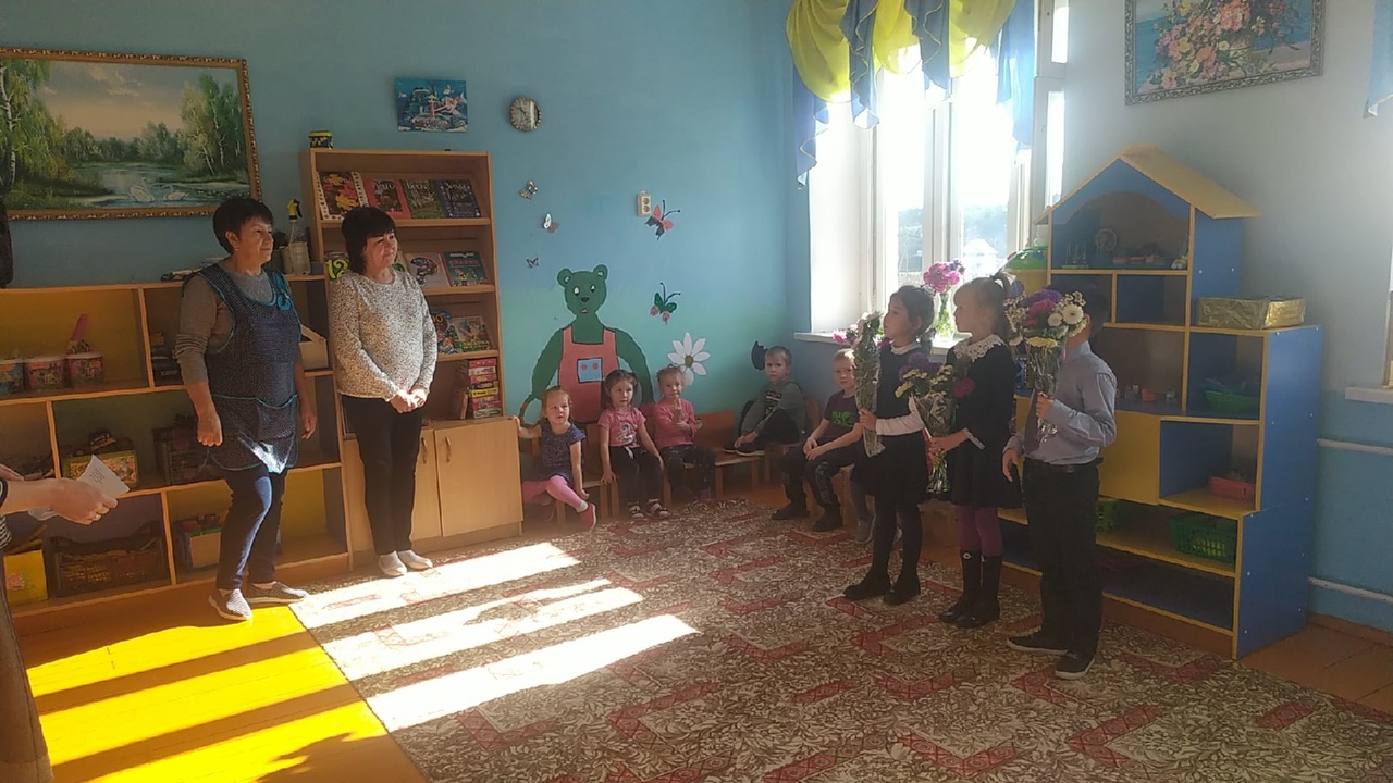 Силами обучающихся 1го класса было организовано поздравление работников дошкольного образования ГДО с их профессиональным праздником. Вместе с советником по воспитательной работе и классным руководителем учащиеся посетили ГДО, вручили букеты и поздравление!