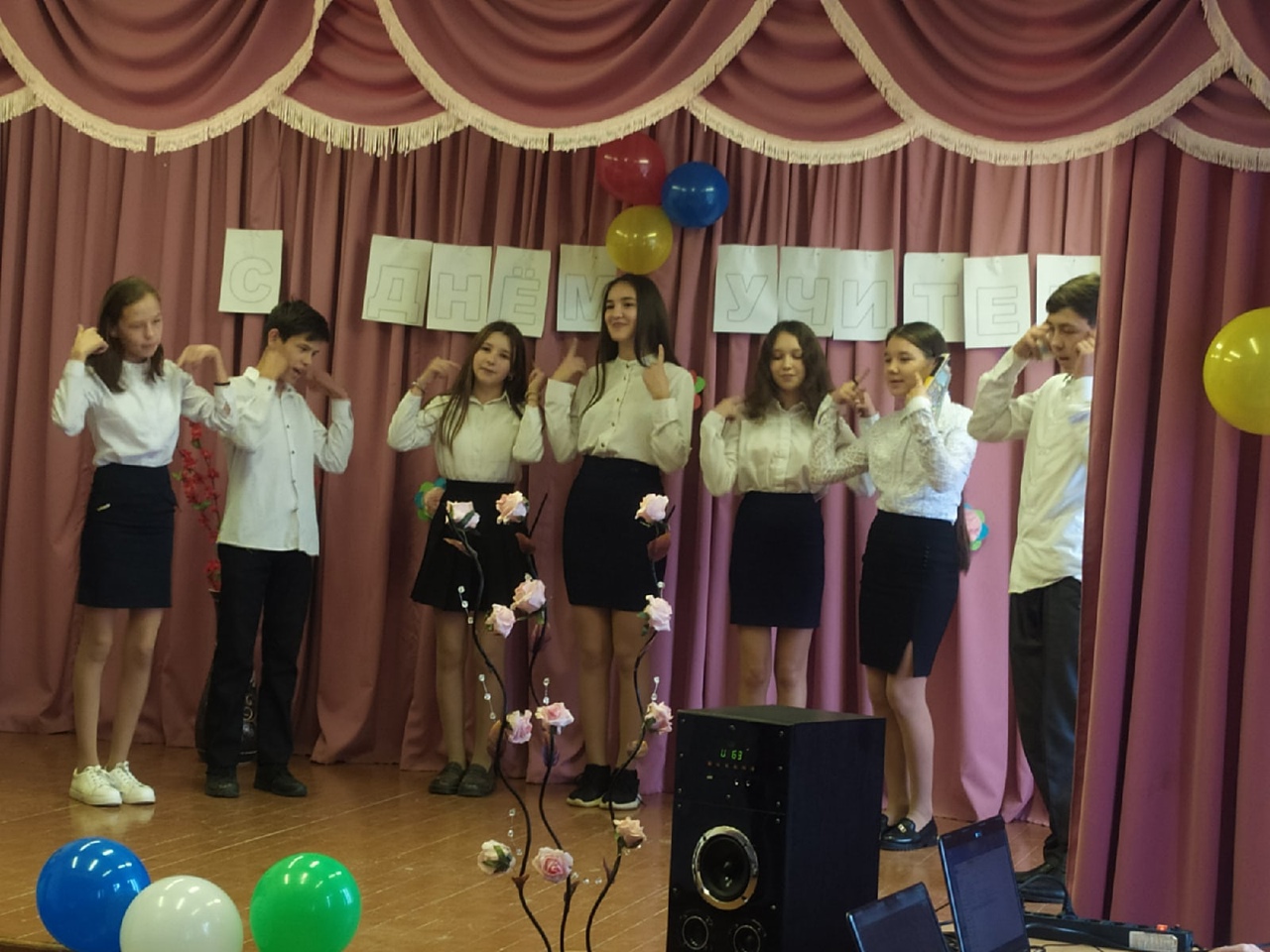В день профессионального праздника для педагогов нашей школы состоялся традиционный праздничный концерт, посвященный Дню Учителя! Ребята 6-го класса (классный руководитель -Шарипова М.Д.) организовали для учителей настоящий праздник. Теплые слова поздравлений, слова признательности и любви звучали в адрес педагогов.